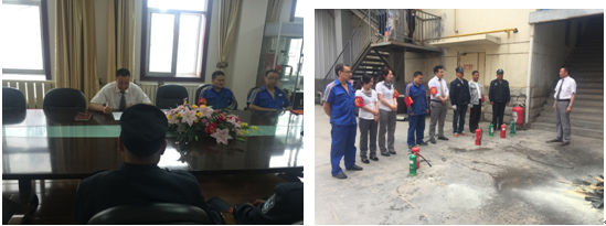 10:30時(shí)安全員和義務(wù)消防隊(duì)員們開(kāi)始進(jìn)行現(xiàn)場(chǎng)滅火演練,通過(guò)演習(xí),大家掌握了滅火器和消防栓的使用方法。