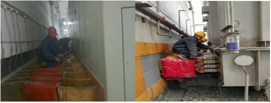 今年,對(duì)動(dòng)力供電系統(tǒng)的濾油和檢修自2016年11月11日開(kāi)始至2016年12月14日結(jié)束,歷時(shí)34天,在車(chē)間負(fù)責(zé)人的帶領(lǐng)下,運(yùn)行各班組按照要求統(tǒng)一協(xié)作,以飽滿(mǎn)的工作熱情與低溫天氣和各種困難作斗爭(zhēng),將工作重心圍繞在機(jī)組濾油和供電系統(tǒng)全面檢修上,他們有條不紊對(duì)計(jì)劃安排的整流柜銅母線(xiàn)螺栓、一次高壓開(kāi)關(guān)和刀閘的瓷瓶、保護(hù)二次系統(tǒng)的端子排、控制柜進(jìn)行全面清掃及螺絲緊固,對(duì)變壓器進(jìn)行清洗,同時(shí)加強(qiáng)設(shè)備巡視,對(duì)濾波系統(tǒng)檢查出的刀閘操作機(jī)構(gòu)嚴(yán)重銹蝕,銅鋁過(guò)渡連接板開(kāi)裂等進(jìn)行了及時(shí)處理,認(rèn)真進(jìn)行消缺,保證了供電安全平穩(wěn)。