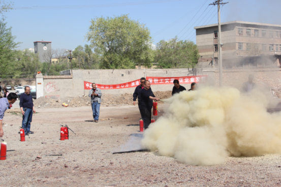首先由公司副總經理做動員講話,接著,安全生產部部長向大家講解常用的手提式干粉滅火器的使用方法,而后參與演練的職工們分別投入到實際演練當中,搶險急救、消防滅火、應急疏散、外圍警戒一氣呵成,全體職工都身臨其境,演練在緊張、有序中進行,達到了預期效果。