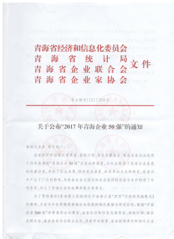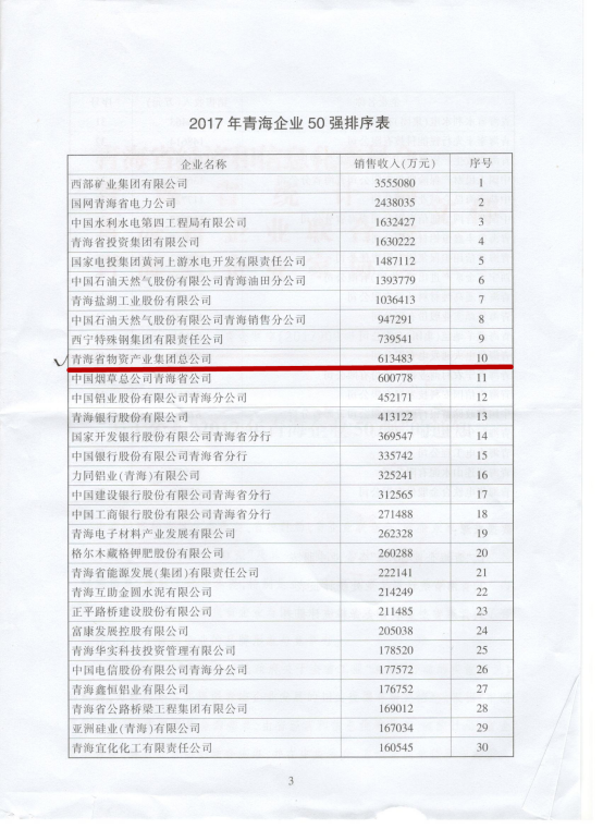 青海物產(chǎn)集團(tuán)總公司再次入圍青海企業(yè)50強(qiáng)