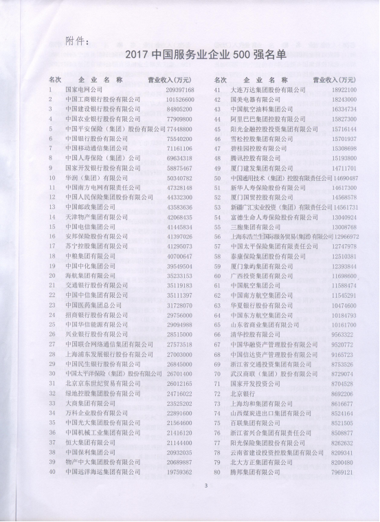 集團再次入圍“2017中國服務業(yè)企業(yè)500強”