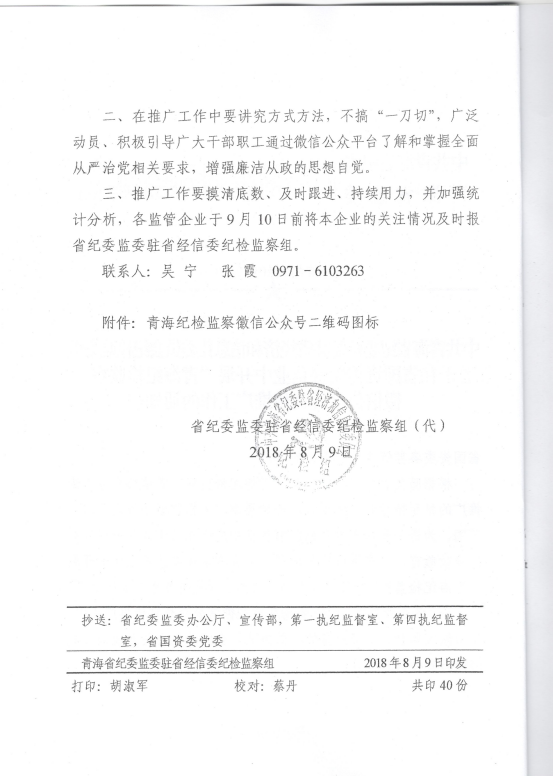 轉(zhuǎn)發(fā)《關(guān)于在省國資委監(jiān)管企業(yè)中開展“青海紀(jì)檢監(jiān)察”微信公眾號宣傳推廣工作》的通知