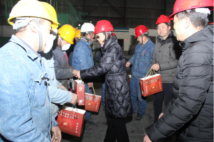 (工投公司訊 陳倫/文?劉燕?李朝暉/攝)"萬家騰笑語、四海慶新春"。在全國喜迎新年的美好時刻,2020年1月24日農(nóng)歷除夕,集團黨委副書記、總經(jīng)理劉玲同志,集團群團工作部負責人一行,在公司黨政班子的陪同下,深入車間班組,為堅守在生產(chǎn)一線的干部職工送上節(jié)日的問候和精美的慰問品。
