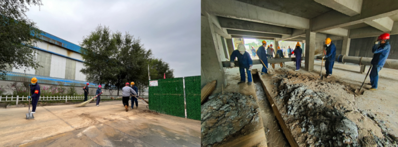 看著整潔的地面和自己身上滿是灰土的工作服,“先鋒隊(duì)”成員說(shuō)道:“臟點(diǎn)累點(diǎn)我們都不怕,衣服臟了干完活再換就行,只要能為公司疫情防控和生產(chǎn)經(jīng)營(yíng)出點(diǎn)力就好”。