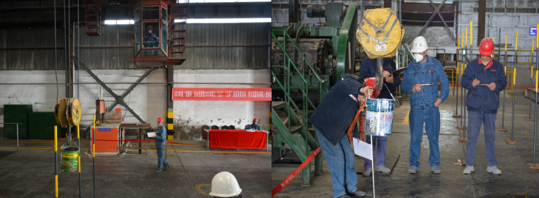 鑄造車間的上空,參加橋式起重機(jī)競賽的女司機(jī)們,駕駛著公司跨度最大的橋式天車,在吊鉤上懸掛著盛滿清水的鐵桶,穿梭在障礙樁、繞行桿、起落平臺(tái)等設(shè)定區(qū)域內(nèi)。