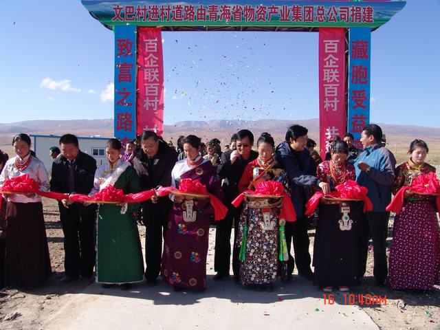 交接儀式上,集團(tuán)公司總經(jīng)理王玉輝、共和縣人大常委會(huì)主任尕瑪才讓為元者村黨員活動(dòng)室、科普文化室、醫(yī)療衛(wèi)生室揭牌之后,與黨委書記白家林、紀(jì)委書記王仁芬、共和縣委常委、組織部長(zhǎng)官卻南見等領(lǐng)導(dǎo)為共和縣黑馬河鄉(xiāng)文巴村進(jìn)村道路通車剪彩。集團(tuán)公司黨委書記白家林代表省物產(chǎn)集團(tuán)向共和縣江西溝鄉(xiāng)提前捐送元者村游牧民定居點(diǎn)工程配套資金100,000元。集團(tuán)公司紀(jì)委書記王仁芬、共和縣委常委、組織部長(zhǎng)官卻南見、江西溝鄉(xiāng)元者村村長(zhǎng)、文巴村村長(zhǎng)分別代表捐建方、受捐方致辭發(fā)言。至此,青海物產(chǎn)集團(tuán)在"百企聯(lián)百村"活動(dòng)中擬投入的1,455,500元,已到位1,255,500元。剩余的200,000元游牧民定居點(diǎn)工程建設(shè)項(xiàng)目捐款將根據(jù)工程進(jìn)度分期轉(zhuǎn)付。