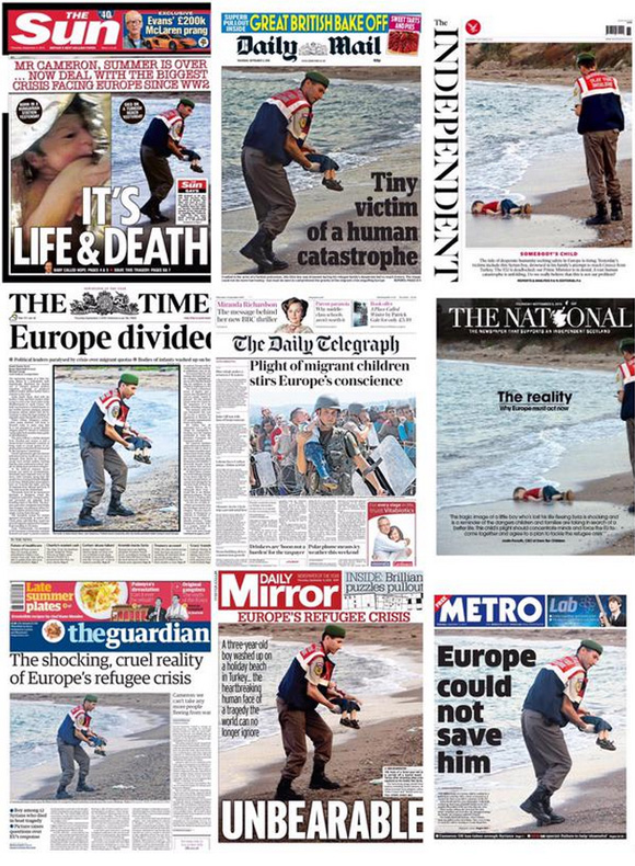 這些照片很快以標(biāo)簽#KiyiyaVuranInsanlik(沖上岸的人) 席卷Twitter,占據(jù)了歐洲各大報刊頭版。