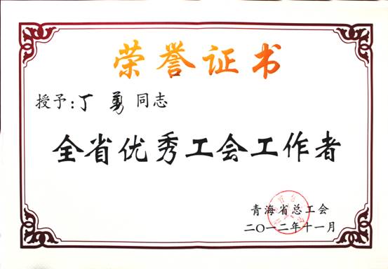 在2012年11月23日召開(kāi)的青海省工會(huì)第13次代表大會(huì)上,省總工會(huì)對(duì)全省優(yōu)秀個(gè)人、模范集體進(jìn)行了表彰。集團(tuán)總經(jīng)理王玉輝同志榮獲"全省職工之友"榮譽(yù)稱(chēng)號(hào);青海物產(chǎn)物資配送有限責(zé)任公司工會(huì)榮獲"全省模范職工之家"榮譽(yù)稱(chēng)號(hào);馬軍同志榮獲"全省優(yōu)秀工會(huì)積極分子"榮譽(yù)稱(chēng)號(hào);丁勇同志榮獲"全省優(yōu)秀工會(huì)工作者"榮譽(yù)稱(chēng)號(hào)。