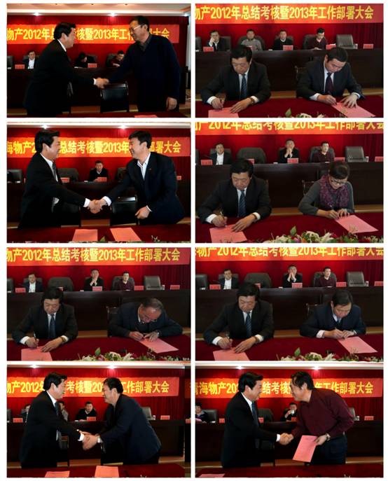 會上,由集團總經理王玉輝與所屬各公司、集團各部簽訂2013年經營業(yè)績目標責任書,由集團黨委書記白家林與所屬黨委(總支)、直屬黨支部簽訂黨建工作目標管理責任書、與所屬各公司法定代表人簽訂黨風廉政建設責任書。